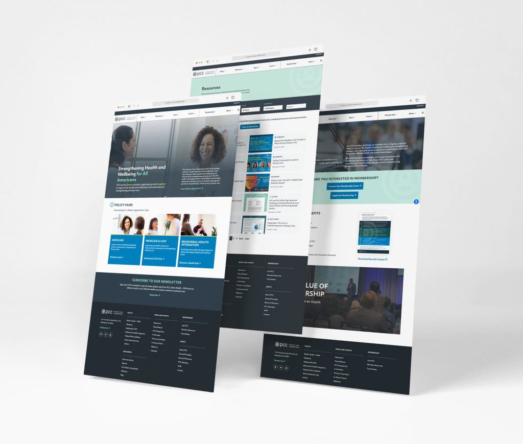 An in-depth brand discovery process was conducted to align the website with PCC’s core values and objectives. This involved analyzing PCC’s existing materials, mission statements, and stakeholder feedback to gain a comprehensive understanding of the organization’s identity. Recognizing PCC’s role as a leading national, nonpartisan, and multi-stakeholder voice advocating for better health and well-being through strengthened primary care informed the development of a design strategy that resonates with their diverse audience.